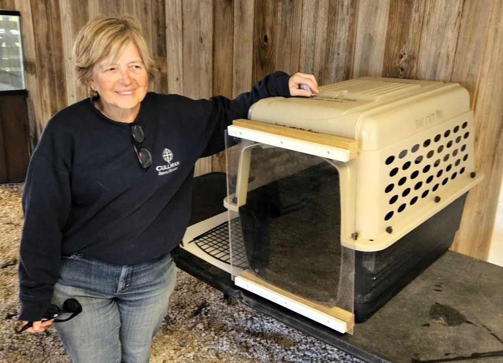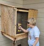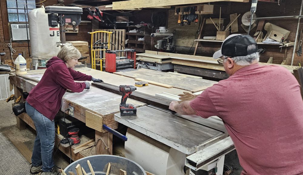 Anne and Ron in the workshop cutting lumber for the enclosure