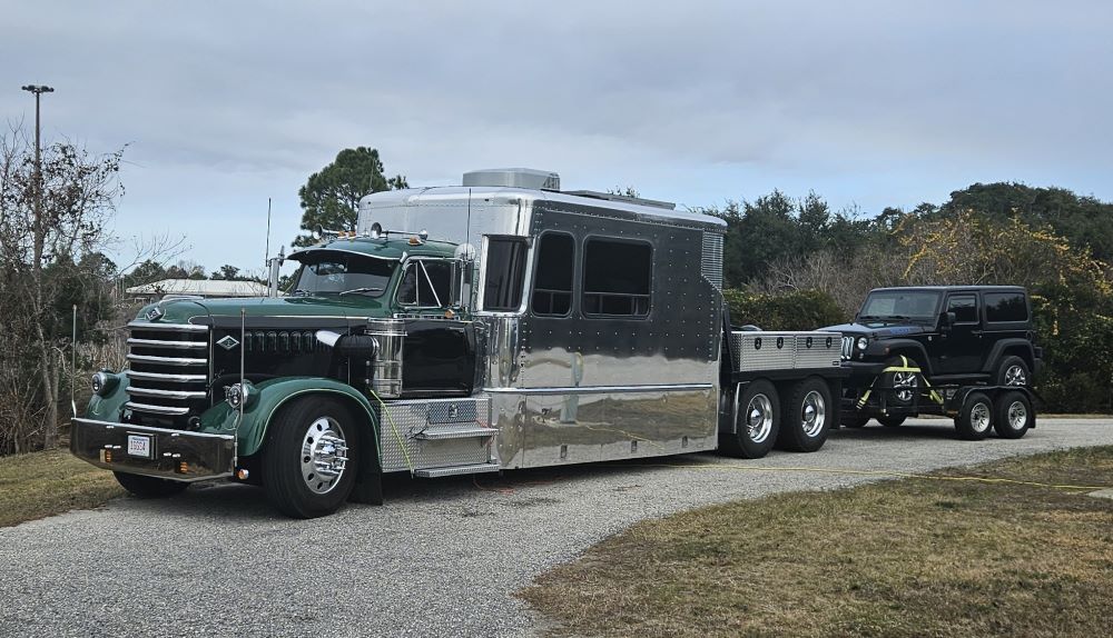 An interesting neighbor for a couple of nights. It is a famous 1956 Diamond T fitted with a camper.