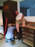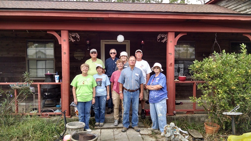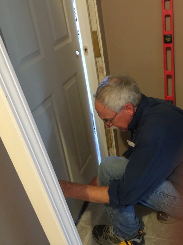 After devotion it was off to work. Today we started on a very nice 81 year old man’s home. He is such a sweet man who let his children, and then his grandchildren, move into his house next door while he moved into this converted (and unfinished) garage. He is staying in a camper trailer next door while we work on the house and he would go to the trailer and then in a little while he would be back to see what we were doing. Shortly he would go back to the trailer, but then you would look around and he would be walking back down the street toward the house. He is really excited that we are here. The guys today worked on the main entrance that formerly was a garage door and had been framed in with 2 windows and a walk thru door. They aren’t quite through yet and it will need caulking and painting, but looks better already.