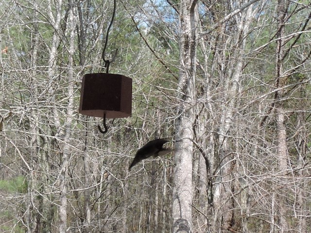 We know it’s spring because we had our first hummingbird at the feeder. Always love it when our hummingbirds return. We had put the first feeder out last week thinking it was about time. Today when we saw the first ruby-throated hummingbird, Max grabbed the feeder to refill it with fresh sugar water. We got one quick picture of the bird impatiently waiting. After Max got the feeder back outside we did not see another bird.