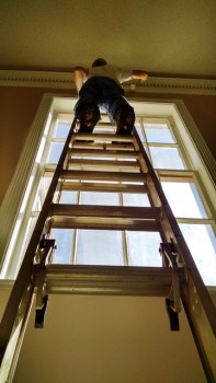 Previous Image Next Image Max painting above window in stairwell Max painting above window in stairwell