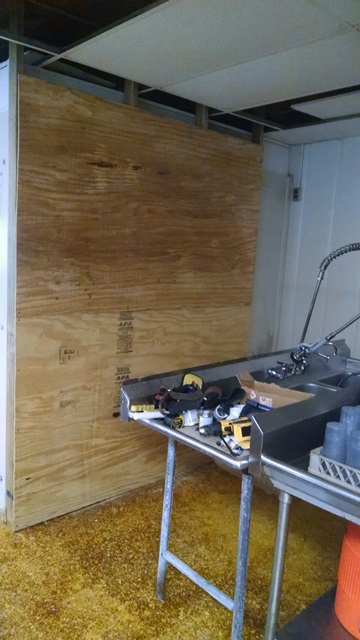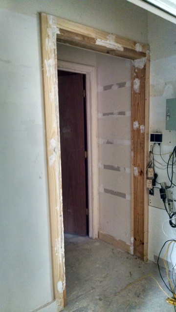 Otherwise, a good bit was accomplished today. Before lunch Pat, Richard and Jim finished the casing of the new door and mudded the drywall around it, and Max and Bill worked on building a frame to protect some pipes in the Pool Camp kitchen. After lunch Max went to his follow up appointment with the surgeon in Cullman and Bill, Jim, Richard and Pat went back to the Pool Camp to work in the kitchen. They got the plumbing in the wall for the sink and the back wall insulated, plywood installed and caulked. Anne, Harriet and Marti continued reorganizing the storage rooms at Little Brown and inventoried a few more closets. Tomorrow we must get the kitchen back to the usable stage since we found out today that they must use it to feed about 70 people Saturday and Sunday. We will be busy.