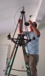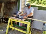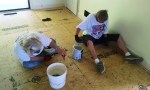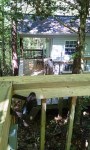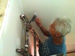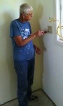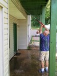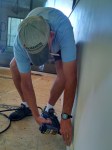What did we do today? We finished the Lake House remodel!!!! A day early!! AWESOME!! We had hoped that the subcontractor who is building the custom cabinets would finally arrive, but it was not to be. Nothing else can be done until the cabinets and flooring are installed. This morning we installed the last of the trim, installed the wiring for the heat pump, touched up a few areas on the paint, and then started cleaning up. The clean up took a while. Getting all our tools back to the motor homes, and the Hinton tool shed was a big task. Then cleaning up all the dust was another big job. The pressure washing of the exterior was also completed. We then had a little time with Bill where we all signed our names on the floor which will be covered with carpet. Bill thanked the team for all their hard work and officially declared our part of the remodel complete. We know the pictures don’t look complete but we will post some additional pictures after the cabinets and flooring are installed. They will also have to get someone else to do the final plumbing and electrical since that can not be done until after the subs complete their work. We had really hoped to do that job for Hinton. Tomorrow we will be doing some outside work.