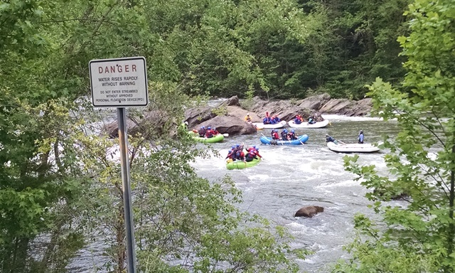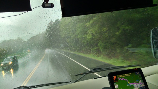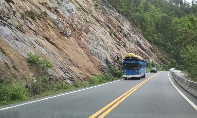 The drive from Trussville to Chattanooga was a pretty drive. It was 71 and sunny in Chattanooga when we drove through. We had one traffic slow down for an unknown reason but much easier going through on a Saturday. We could see distant clouds building as we went through town. By the time we got off the interstate in Cleveland it was cloudy. The drive down through the Ocoee gorge was nice. They were releasing water in the river today and the rafters were out in full force. All the outfitters had buses on the road. By the time we got to the most popular put in point it had started very light rain. We have done the rafting trip down the Ocoee several times and that water is cold on a nice hot summer day. Many of the rafters had on wet or dry suits today. They still looked cold. Glad it was someone other than us on the river today. It was a much easier drive through the gorge today compared to the wind and rain of Thursday afternoon.