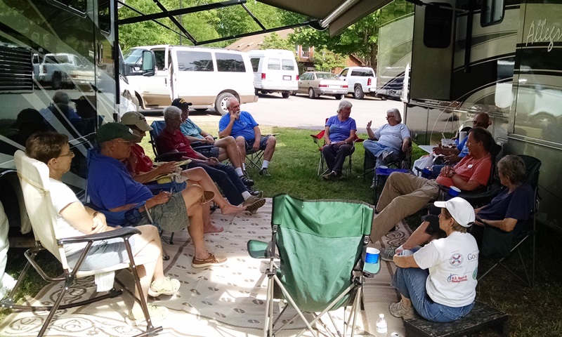 It was raining by the time we got to Murphy and intermittently from there to Hayesville we had really heavy rain. So it was 71 and sunny when we left Trussville and four hours later when we arrived in Hayesville it was 51 with a cold rain. What crazy weather we are having. We stopped and ate pizza at the local pizza place – Roma’s – before returning to camp. Good pizza and we have enough left for another meal. Arrived back at camp safe and sound, a little tired, and settling in for a quiet evening. Looking forward to taking the team to church tomorrow at Sharp UMC in Young Harris Ga – just across the state line. Remember to pray for your pastors.