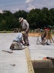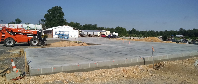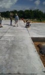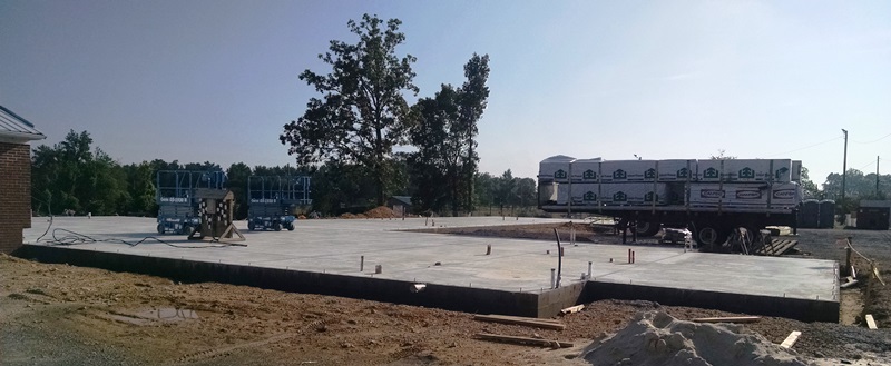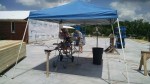 The guys started today with a blank slab and worked to put down the exterior wall sill plates and marked the interior walls on the slab. It’s always the small Saturday crew’s goal to have it so the full crew can start building walls Monday morning at 6:00. Today they also opened up all the tool trailers and checked equipment, assembled saws and other general activities necessary to the start of the project.