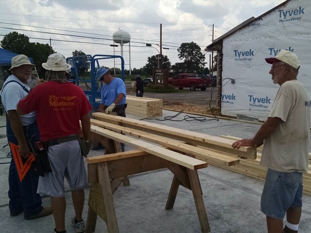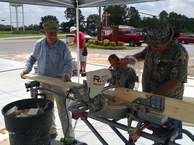 The forecast was for some rain today but we had heavy fog early then it was a mostly sunny, hot day. The guys got up, had breakfast and headed out to Rosalie Baptist Church to start work at 8:00. The girls got to stay home a couple more hours and visit and enjoy a cup of coffee. The drive to the church is 23 miles and takes about 25 minutes.