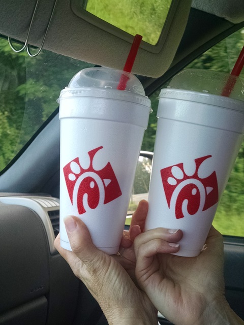 After work Anne and Max had to go to Lowe’s to pick up some supplies for tomorrow and since Chick-Fil-A is next door…we had peach milk shakes for supper, again – but don’t tell our Mom’s.