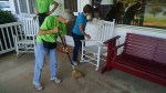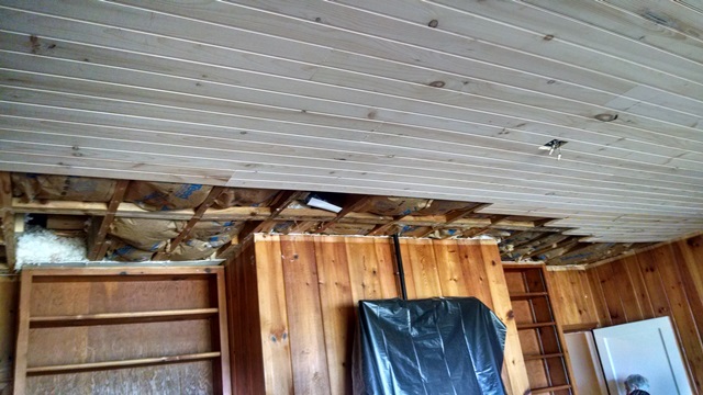 So what did we do? We started the day with all four of us – Ken and Joyce, and the both of us – working in the McCall House. We were working on installing the tongue and grove ceiling in the living room. Anne and Joyce did a lot of cleaning the area to make for a safer work site. We also rescued some lumber from the scraps at the pavilion. They were going to take it to the dump anyway and the pressure treated makes good pads for the levelers. About 9:00 Anne and Joyce began reprogramming locks all over campus. They have the push button locks on the doors and they had most set to the same code for summer camping season and we changed them back to individual codes. Anne and Joyce finished that project shortly before lunch. The guys continued to work on the ceiling but had a disappointing set back. The HVAC guys came and insulated the condensate pipe and said all was well and the guys continued putting up the ceiling waiting for the A/C to cool the house. Well, it did cool the house but soon they were getting water in the face again. There was another leak. They were sort of bummed out when they came back to the rigs for lunch. After lunch we all had a meeting with Jackie, the CEO of Hinton. She explained various possible scenarios for the upcoming weekend and gave us our scheduled tasks. When not working on scheduled tasks we will be walking the grounds checking for trash and assisting guests with any needs. After that meeting was over, the guys when back to the tongue and groove installation. You know there really isn’t much difference in the ceiling installation and all the laminate installs we did in Lumberton. The main difference seems to be working on your knees or over head. Not sure which is preferred. The girls spent the rest of the afternoon setting up Moore hall for an event Sunday. They moved and set up 15 tables and 90 chairs. When that was done they returned to McCall in time to help with the cleanup. The guys covered as much of the ceiling as possible pending the HVAC folks returning to repair the drain again. They did not come this afternoon. There is a little hope they will come in the morning and the guys could finish pretty quickly and the house would be ready for the weekend. We aren’t very hopeful that will happen.