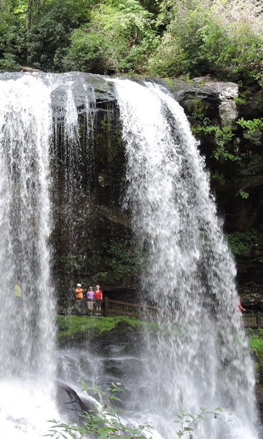 From Franklin 64 turns into a Scenic Byway leading to Highlands. This section of 64 definitely qualifies to be labeled a scenic byway. It was an absolutely beautiful drive through the Cullasaja gorge. We had to make several stops for pictures. So very pretty. You know we love funny name places. We stopped at one water fall visible from the highway called Bust your Butt Falls. It looked like you could if you weren’t real careful. Next stop was at Dry Falls which was anything but dry. It was a short walk from the highway down some steps and a boardwalk. It’s called dry falls because you supposedly can walk behind the falls and stay dry. Not when the wind is blowing in the wrong direction. Next was Bridal Veil Falls, another falls right beside the highway but lighting was poor for pictures so we stopped back by on the way home and got some good pictures. We did a driving tour of Highlands. Really pretty little town with neat little stores and gorgeous landscaping. Glenn Falls was multi-layered and required a good deal of somewhat strenuous hiking, but worth the work.