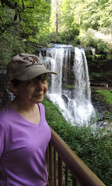 After breakfast Anne’s cousin Nancy offered to take us on a waterfall tour in the Nantahala National Forest. We always enjoy waterfalls so we were all far it. We left the campground continuing on east on 64 through Franklin.