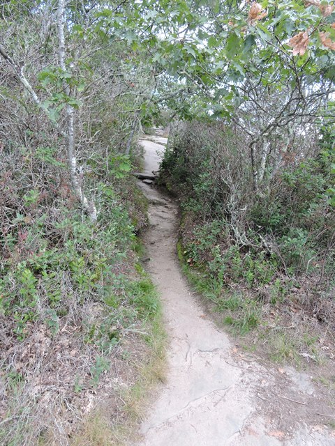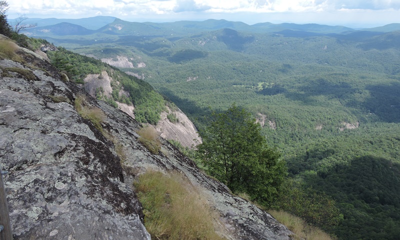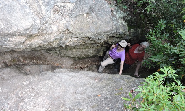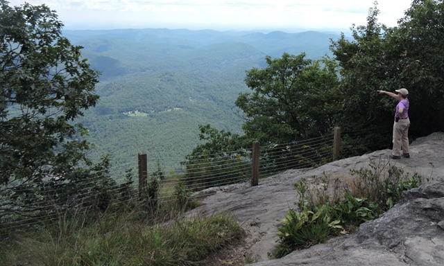 We stopped at Whiteside Mountain and had a quick picnic lunch before starting the hike up the mountain trail. Fortunately we had Nancy for tour guide because here she told us we should take the strenuous way up, with lots of steps and roots and steep climb. The sign said to take the more gentle incline from old road bed up the mountain. Nancy definitely knew the best way because the “strenuous” route on the way down would have been really hard on the knees. It was about a four mile round trip.