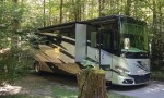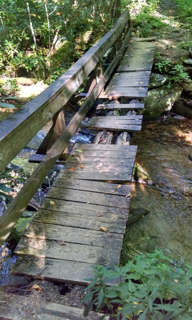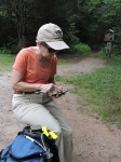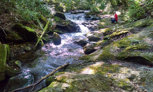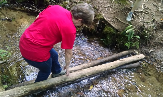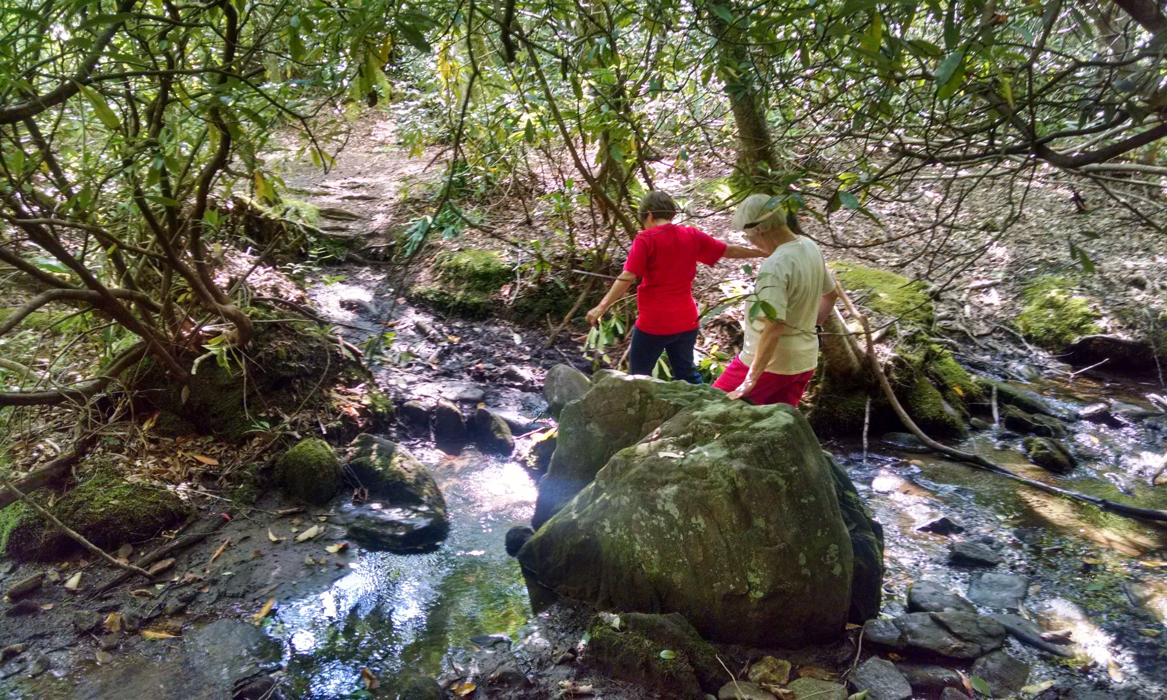 After our nice little or not so little meal, we decided it was time for a hike. We decided since we have never stayed at Standing Indian we would start with one of the hikes with trail head in the campground. Nancy has been camping here since she was a child and she recommended the Kimsey Creek Trail. It was a very nice hike following a little creek. It connects with the Appalachian Trail but since we got a late start we hiked about 2 hours out and then turned around and returned to camp hiking between 7-8 miles. We really enjoyed the hike. We love the mountains. The trail was beside the stream a lot of the time. It had some pretty hard up hill sections that reminded us that we haven’t been hiking enough lately.