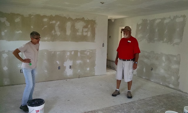 Max: Gary and I met with Chris, our local coordinator from Recover, Rebuild, Restore Southeast Mississippi (R3SM), this morning to see the work sites planned for us next week. We saw two houses. The first is on Edwards Street and needs the bathroom and kitchen finished, the floor refinished and some drywall work. We may also finish up some outside trim work.