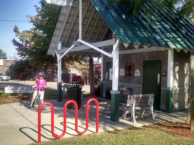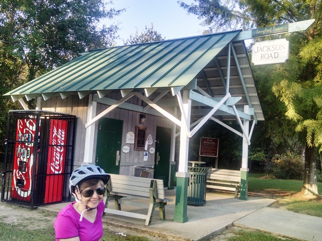 We really debated riding our bikes today or staying at home resting. But we had planned to ride the Longleaf Trace rails-to-trails multi-use trail earlier in the week. The trail has a great reputation and since it was the last day we would have, we got up early today and hit the trail. The weather was perfect for a ride and this is probably the best bike trail we have ridden. Nice wide, paved trail. We understand why it is so popular. It’s a 41 mile trail and we road 22 miles round trip today. It was a really nice, fun ride.