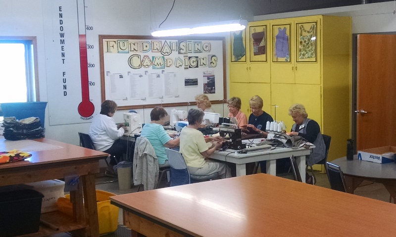 Previous Image Next Image The sewing room where volunteers make bags for various kits The sewing room where volunteers make bags for various kits