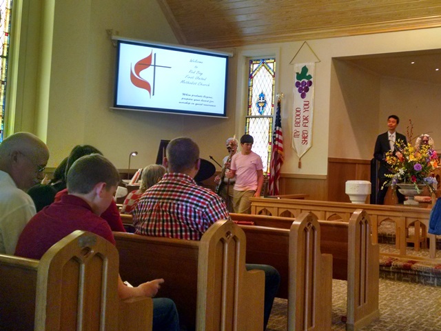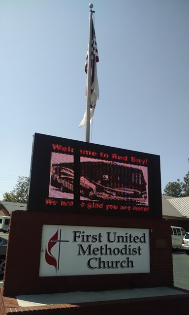 After the late night last night, we slept in a little this morning. It was another beautiful morning and we decided to go to church at Red Bay First UMC. It’s located just right down the road from the campground. The pastor is deployed with the same Guard unit with Bryson that we asked you to pray for Friday. The “fill-in” appointment is Yohan Hong. We never really know what to expect when we visit a church on our travels and today was the same. We really enjoyed today’s service. Pastor used the scripture about Jesus turning the water into wine at the wedding feast. He reminded us that Jesus was an invited guest at the wedding, but that Jesus doesn’t want to be our guest but rather our Lord and Master. Very good service and very welcoming congregation. Will definitely go here again next time we are here. Other RVer’s from our campground visited today as well. We were all impressed with the church.