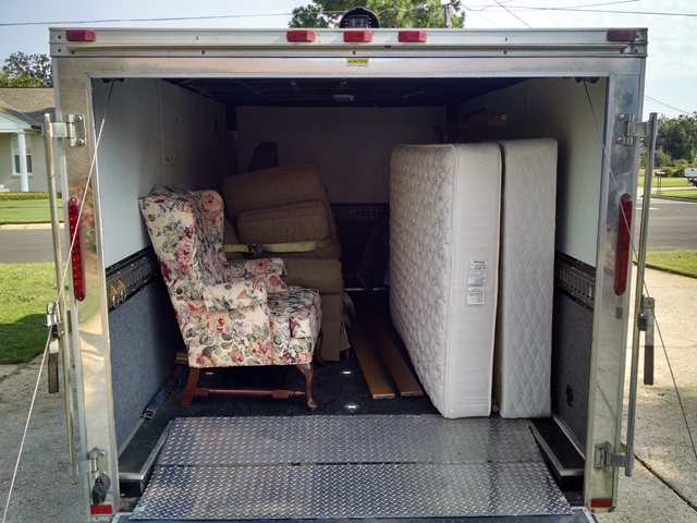 We knew today was going to be a long, hard day but all in all it went well. The day began at 4:30 am (YUCK!). We hit the road a little before 5:30 headed to Tuscaloosa. It was another cool morning with a pretty start to the day. We arrived in Tuscaloosa a little before 8:00 and started getting furniture ready to move from Anne’s mom’s home to the assisted living. Jim, Anne’s brother arrived from Atlanta about 8:30 with the trailer and his two sweet dogs. We had the trailer loaded by about 9:15 and headed over to the assisted living facility which is only about 2 miles away. Mom, of course, was glad to see the three of us and we began the unloading process. We were really blessed with 4 young men who were there moving their grandfather into the Memory Care unit. They saw us unloading and just jumped in and grabbed the mattress and box springs and took them right to Mom’s room and kept returning to the trailer for another load until everything was upstairs. We spent the next several hours moving furniture around in the apartment. We eventually had things arranged in a way that made Mom happy. We did have to return to Mom’s with one chair that was just too large for the space and returned with a smaller chair that looked much better in her bedroom. Mom will be happy tonight to sleep in her bed with her quilt and pillows. She was already enjoying resting on her couch. We hope having more of her things will make her feel more at home. We will have to work on some pictures and decorator items over the next few visits. Mom really doesn’t care much for the facility’s hair dresser so she had asked us to get her an appointment with her usual stylist, Brenda, so at 12:30 Anne took her to see Brenda. Mom had a good day – her stuff moved in and a day with her hairdresser. Anne also got a haircut. After another trip back to the house for a few more things, it was time for us to head to Birmingham before the ballgame was over.