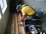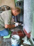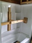 We had a short morning meeting since we met last night and were in route to the job site by 8:00. Traffic is pretty heavy around here at that time. There are several schools nearby. It took about 20 minutes to get to our work site. We toured the house and then started determining what we wanted to start on first. We think the house was probably built in the 1940’s or early 50’s. Cute little house. Today we did some cleanup, some drywall repair, work in the pantry, striping of some trim to try to salvage it and Max and Anne spent most of the day working in the bathroom. We installed the bath tub and tub surround. We think it looks pretty good. It was more of a challenge because the walls, of course, were not plumb. We will be installing drywall tomorrow. Sharon is working on the fireplace, painting Kilz on the mantel and brick because it is now going to be white to match the rest of the trim in the room. We felt good about what was accomplished today and love being back at work on a project.