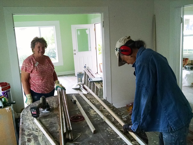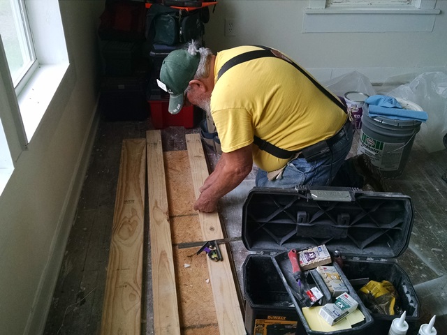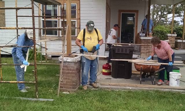 We of course started the day with devotion, by Gary, based on Proverbs 19:21. He reminded us to not let our work plans get in the way of God’s plans for our day, especially when it comes to spending time with our homeowners and their neighbors that sometime come to see us. A good example was when Sandra, the homeowner, came by at lunch today. We were still on site when she arrived and are so glad we didn’t go eat with the rest of the team today. We thought the bathroom was the number one priority, but Sandra’s priority is the bedroom. We discussed that with Gary when he returned and we will be adjusting some work plans.