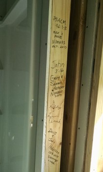 Previous Image Next Image All the team wrote on the framing All the team wrote on the framing before we covered it with drywall.