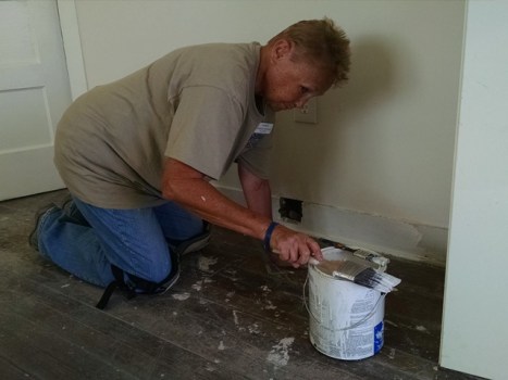Sharon painting bedroom baseboards