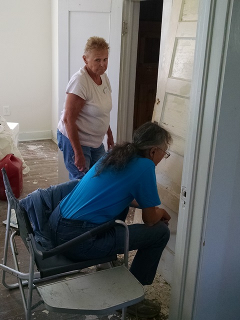 Previous Image Next Image Sharon and Lynn preparing a door for paint Sharon and Lynn preparing a door for paint