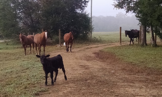 It was another nice morning. No fog today. The turkeys returned, all 18 of them. We also had two calves come for a visit. The little ones can just come through the fence if they want. However, if you encourage them to walk back toward the gate, they just step back through the fence and return to their mama. Just hope they don’t come visiting when we are at work tomorrow and leave us presents.