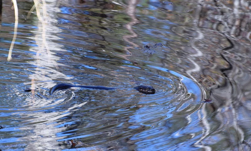 Well, we lost our beautiful fall weather today. It was cloudy and rainy all day. Most of the day it was just a drizzly and foggy. We did see the otter again this morning, but no ducks. Tomorrow it is supposed to improve with the weekend being partly cloudy with highs in the low 60s and lows in the low 40s. We hope the rain is gone because Philip and Lauren and the kids are due to arrive tomorrow. We are so looking forward to their visit and Juno can’t wait to see them. We want good weather so we can go hiking, too.