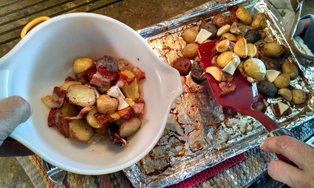We then prepared dinner. When we were last in Publix, Max picked up a new recipe for Roasted Potatoes with Bacon. We decided to try it out today to go with our left over turkey. It’s was a keeper even though it’s not very healthy with four strips of bacon. It was good, as was the leftover turkey.