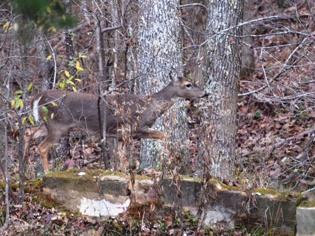 We are still stuck in gray, cloudy days. It was another cool, damp feeling day but we did get to see four deer crossing our dam this morning a another three in the field when we were coming in this evening.