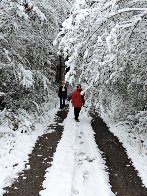 The pine trees and privet hedge were so weighted down with snow they blocked the drive. Barry and Donna walked over and we all walked out the drive together. It was nice to have some unexpected time with them. The drive was very pretty but glad we didn’t need to go anywhere. We just relaxed and enjoyed our quiet day. It was an unexpected blessing. Another huge blessing is our uninterrupted power. There have been many outages throughout the state but so far we are fine. Of course we can always go to FRED and turn up the furnaces and stay toasty warm. Another blessing. The storm is continuing north east so hope our family and friends in Georgia, South Carolina and on up the east coast are all warm and safe. Everybody be careful out there.
