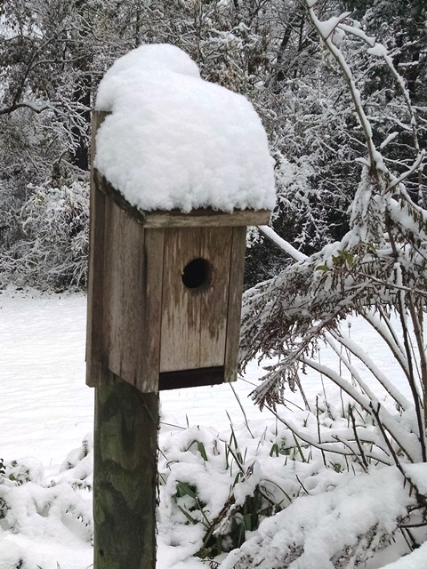 So we usually start with something about the weather but today that’s about all there is. It started snowing before 3:00am because when we looked out we had about ½ inch of snow. Hmm. That’s about what was predicted so we went back to sleep. It was still snowing at 5:00 and 7:00 and continued to snow until around 3:00pm. We had 5 inches here on Pine Mountain. Much more than was predicted but other places got upwards of 10 inches. Totally not what was predicted and way more snow than we usually see this far south. It was the first time in over 23 years that we both could stay home and enjoy the snow. Max just smiled because he didn’t have to worry about the safety of all the Blount County citizens. It was so pretty and 31-32 degrees with very little wind, so not too cold to be out taking pictures.