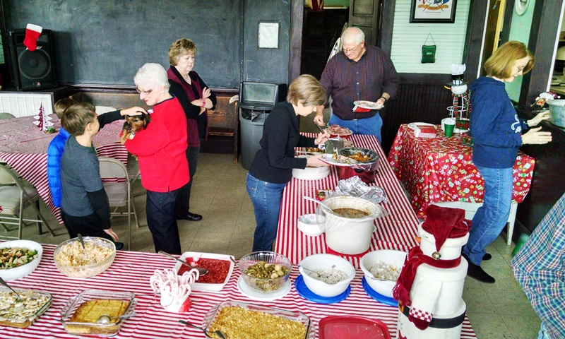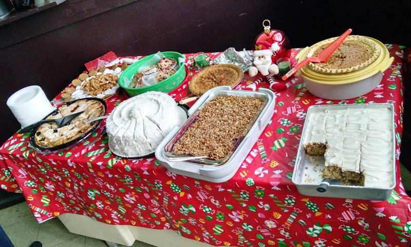 Today was Aunt Helen’s annual Christmas luncheon at the Pine Mountain Community Center and we were certainly thankful for nice weather to get Juno and Helen to the event. It was a small group this year, only 22 because most people will not be able to be on the mountain until next weekend. When Christmas falls on Sunday or Monday we generally don’t have as good attendance. In the years past the event was at Aunt Helen’s house and we have had as many as 75. That made for a crowded house. However, all that were able to attend had a very good time visiting. And of course the food was wonderful as there are many excellent cooks in the family.