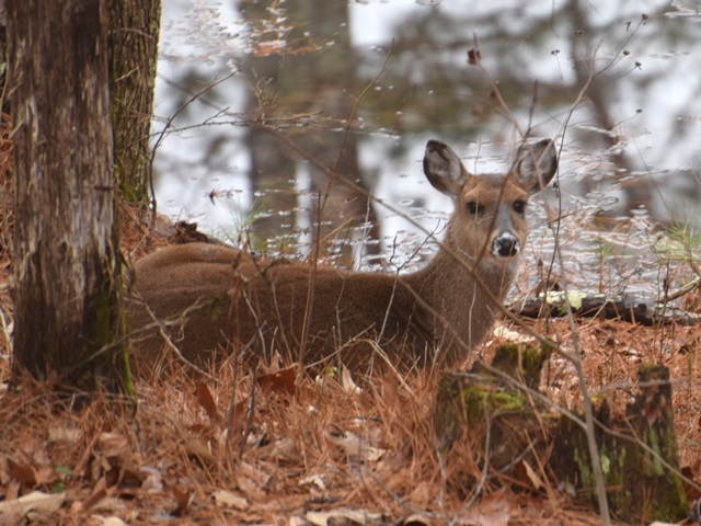 But there are blessings on gray days too. Looked out and we had a beautiful doe bedded down in the pine straw just off our bedroom deck, down by the pond. She was still there when we left for Tuscaloosa. So pretty. Last night coming home from Aunt Helen’s we saw a really big buck. He had the largest rack we have seen in a long time. Hope he survives hunting season.