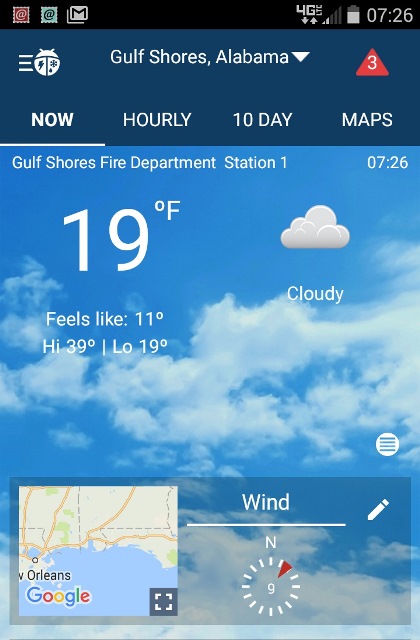 It was a really cold morning. The official low was 19 in Gulf Shores. Our thermometer didn’t go below 23, but that was cold enough. We have been pleasantly surprised at how comfortable we have been living in FRED in these cold temperatures. FRED 2 has better insulation than FRED 1 had and the heat pumps and furnaces have worked great. We have not cleared the antifreeze from the lines yet and have just been using bottled water to flush the toilet and wash dishes etc. We have used the bath houses here at the park as well. The sun was out today but it was after lunch before we got above freezing. Our high was 40. However, they keep changing their minds on the low for the rest of the week so we will wait until tomorrow to decide about unwinterizing. We have waited this long we sure wouldn’t want to do it one day too soon.