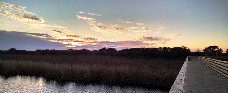 While it was 40, we decided to do a little walking around the park. They have made a lot of improvements since were were here last in 2013. We are told most of the improvements have been funded by the BP settlement money. There are new boardwalks everywhere. They are finally rebuilding the old convention center and the bike trails have been greatly improved. None of the projects have been completed but some of the trails and boardwalks are open. Too bad it’s been too cold to ride bikes. We walked out one of the board walks for sunset this afternoon.