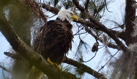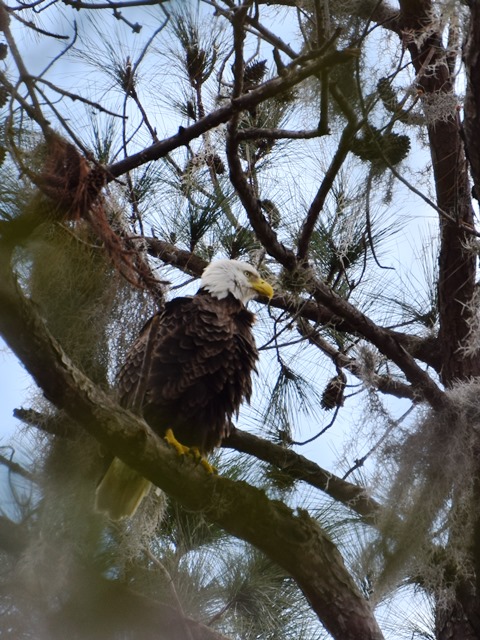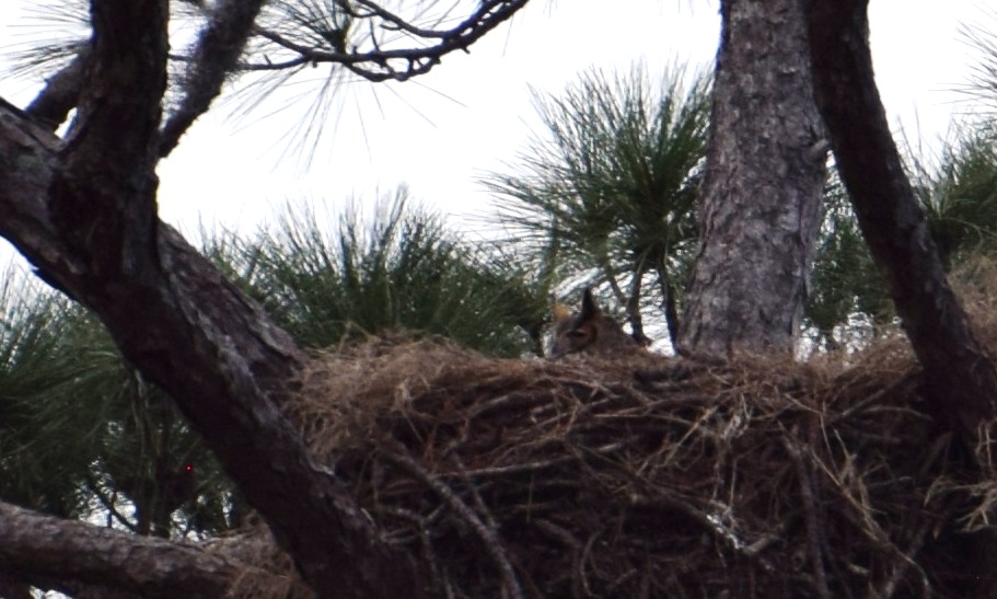 This morning we hiked rather than biking, back out the East Central Regional Rail Trail to the eagle’s nest. Just after getting on the trail we spotted another nest close to some condos. Strangely it appeared to have a Great Horned Owl sitting in the nest rather than eagles. We met someone on the trail that lives in the condos and she said one of the pair of eagles that was there the last few years died and the survivor has not returned. We did some research and found that it is not unusual for Great Horned Owls to take over eagle nests. They have even been known to run the eagles off at times. We like owls almost as much as eagles so it was cool to see that today.
