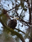 When we got back out to yesterday’s eagle nest we didn’t see anything. We had almost given up when one of the eagles started calling. A short time later one was again on a branch above the nest. We continued to watch and eventually the one on the nest perched on the edge of the nest for a minute and then flew away. It returned a little later and again went down into the nest, we assume to sit on eggs. That time we were able to see the top of her head above the nest. The other eagle, we presumed the male, continued to be on guard on a branch above the nest. A fun morning bird watching. Love the eagles.