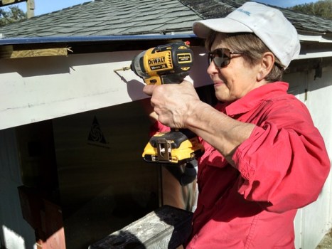 Previous Image Anne installing fascia on shed in water plant Anne installing fascia on shed in water plant