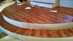 Elaine worked in the Thrift Shop this morning but came outside and helped us in the chapel for a while this afternoon. Janie and Karen have been working on new flooring for part of the stage area, and enlarging the steps to the stage. They have made good progress and plan to start gluing down the flooring tomorrow.
