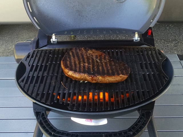 After having our dessert first, we then went home and Max tried out our new grill again and grilled us a very nice steak.