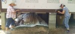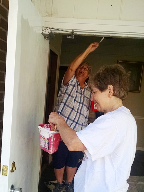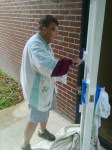 It wasn’t planned but we ended up working around the church this morning helping them spruce things up a little for Easter. Such a sweet congregation. There was weeding, and trimming and sweeping. Oh, I almost forgot. Pastor Dave asked us to take down the Lent sign. The banner portion was a breeze but then there were these 2x4s that seemed to reach to China. The two of us were out by be highway trying to get these four posts up and one of the members of the church across the street came over to helped us. He thought it would be easy with the shovel he brought along. We were all surprised with how much work it took even after digging around the posts. Anyway, with his help and a lot of laughter, we finally got them up. We sure did appreciate our good neighbor.