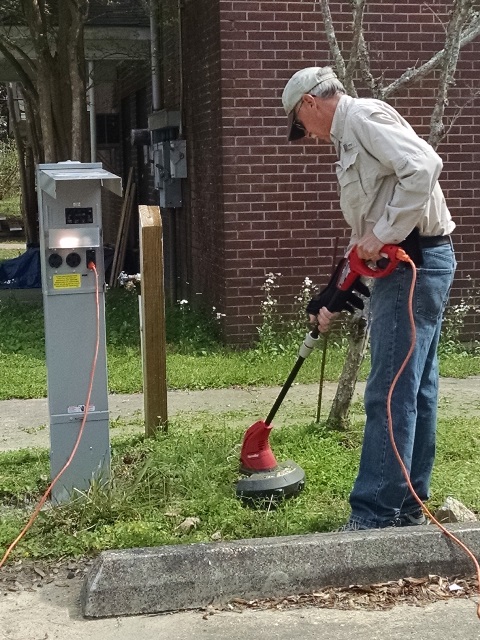 After breakfast found a weed eater and worked on neatening up the area around where the RVs will be parked. As we were starting on that project we saw a couple walking toward us and realized it was Jo and Mark. There are on our team for next week and came over from New Orleans to scout out their route. It was so great to see them. We visited for a while and then they decided they really didn’t want to stay in New Orleans any longer and went back and packed up and moved to Baton Rouge this afternoon. Fun times!