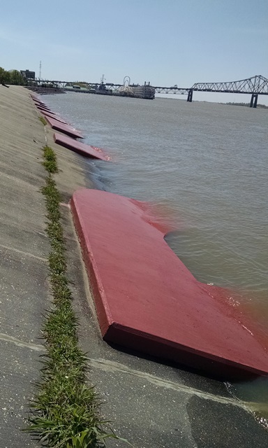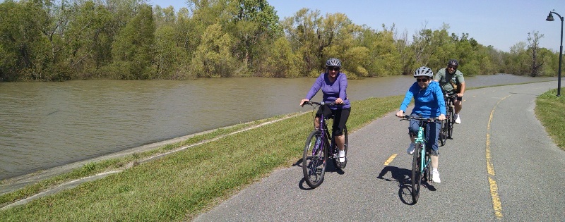 Today Gary, Avis, Stel and Jodi went to the southern tip of Louisiana to the southern terminus of the Mississippi River. Dave and Rita made a trip to New Orleans. Finally, we rode the Levee Trail. Jo and Mark rode with us. The levee trail runs along the top of the levee that keeps the Mississippi River from flooding downtown Baton Rouge and the LSU campas. The Mississippi was still incredibly high, but it has receded just a little since last Saturday when we walked a section of the trail. The trail was a good ride, about 10 miles, and less crowded today than last week. We always like riding along the water.