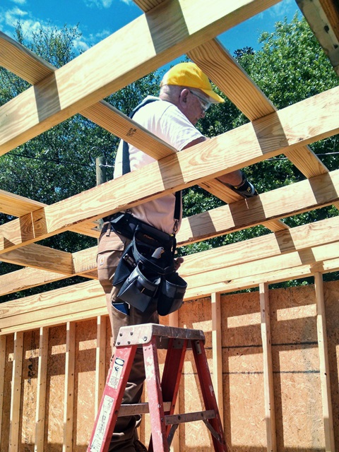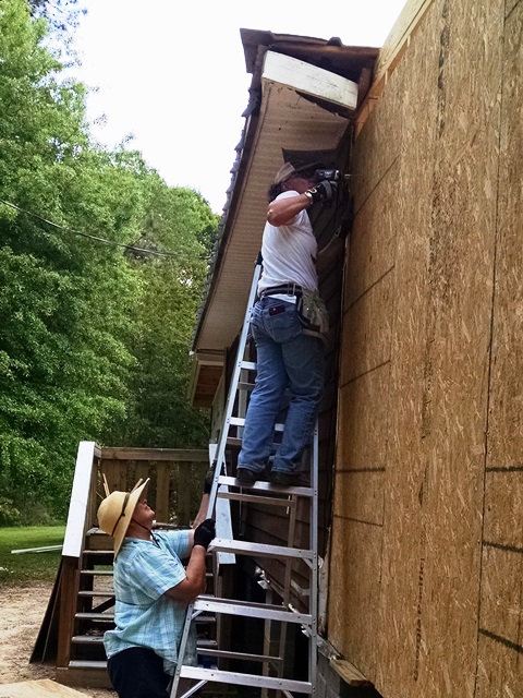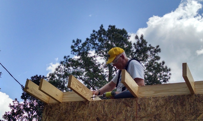 We really missed Stel and Jodi on the job site today. We have gone from 13 team members to 7 today. However, they are an extremely hard working 7 and accomplished a lot today. We pulled the “Siding Crew” over to work with everyone else on the second addition today. Suzanne, Lee Ann, Mary and Ron worked to put up the sheathing. Barrie also helped with that for a time this morning. It is up except for one piece that we didn’t put up so we could more easily access the area. Good work! Max and Barrie installed the rest of the rafter blocking and then got all the purlins installed. You rock guys! Anne helped with what ever was needed but spent a good deal of time on the purlins as well. It was a very productive day.