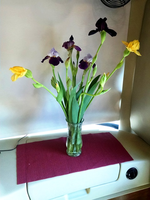 We brought more irises back with us. None were blooming when we cut them, but two had opened by the time we got home.