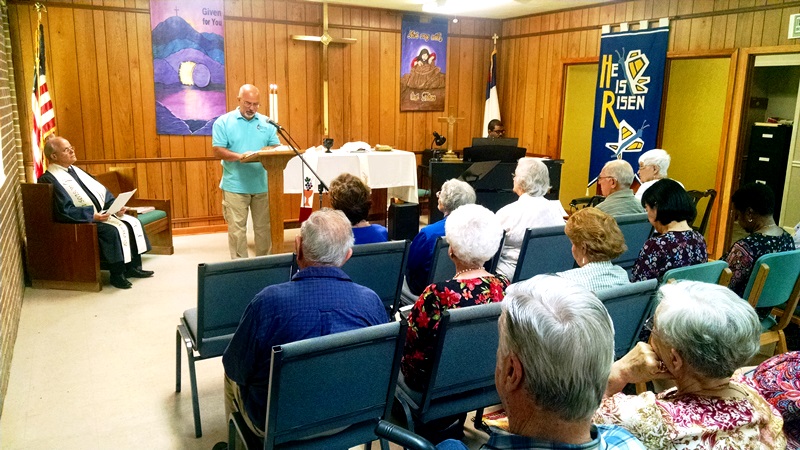 We slept in a little since church isn’t until 10:30 at Francis Asbury UMC. The congregation was again very welcoming and thanked us for returning to work again. The church was full today, with very few empty seats. Pastor David’s message was “We Gather Together”, based on Luke 24:30-31, 35 which our leader Dave read, and Luke 24:36-43 and John 21:7-13 read by members of the congregation. After the message we shared in communion. Dave had invited David and his wife Melanie to joined us for lunch. We went to the Jones Creek Cafe, a new restaurant for us. We had crab cakes which were really good. Everyone seemed to enjoy their food and we would definitely return. Fortunately, the restaurant wasn’t really busy today because we stayed there visiting with the entire team and David and Melanie until almost 2:00.