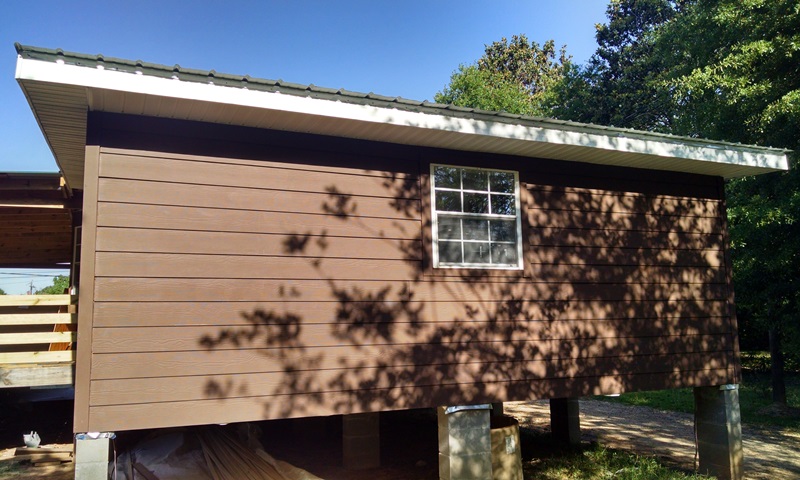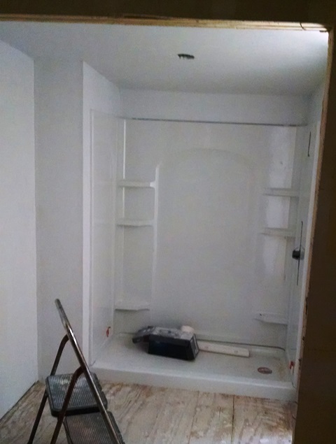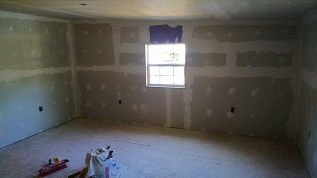Of course the day started with morning meeting and devotion. We are working out at Richard’s so we started at 7:30 since it takes a while to get out to Baker. When we arrived we were all smiles. The house looks great! Suzanne and her various crews did an awesome job on the siding. The inside is looking good too. Since we left, the drywall has been installed, the shower in the master bath installed, a bathtub has been installed in the second bath. The master bedroom got a coat of Kilz last week and the second bedroom, bath a closet had part of the drywall tape and mud applied. Part of the living room and kitchen have been painted. It is starting to look really good.
