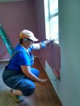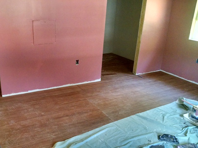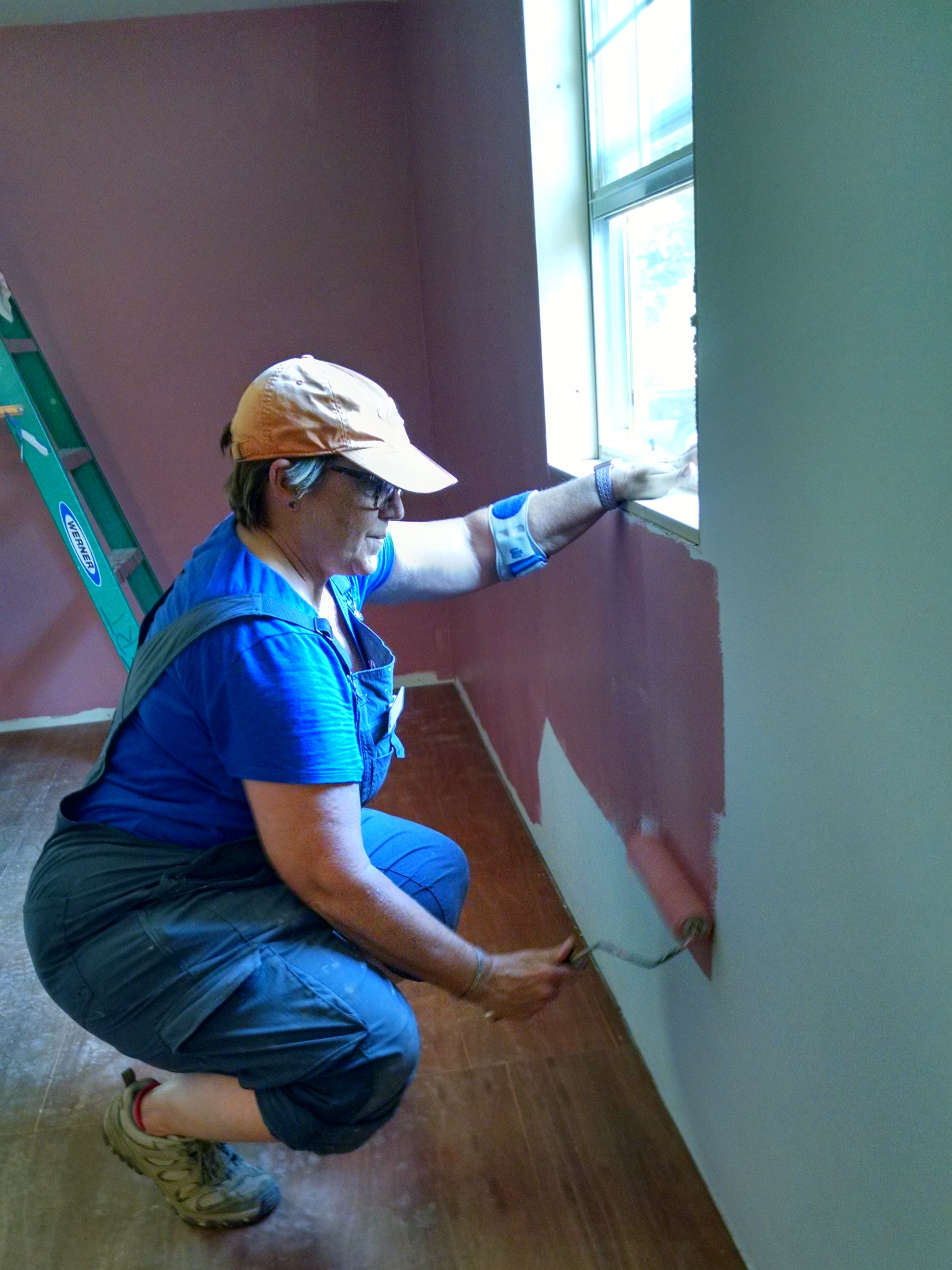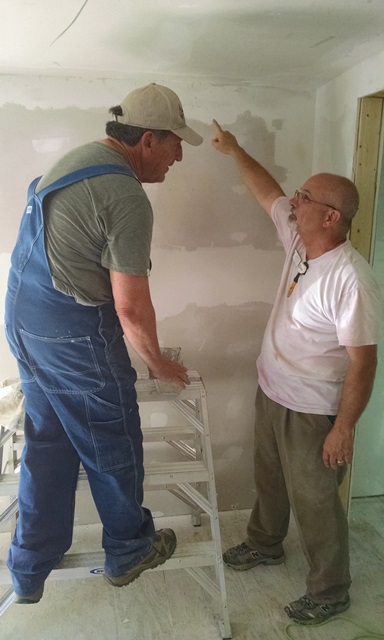 After devotion and a brief team meeting, we ran into Pastor Laraine in the kitchen and were able to talk to her about NOMADS returning to Baton Rouge next February. It was great to see Loraine even for just a few minutes. We then made the drive to Baker and began work again, where we left off yesterday. Stel, Anne, Carol and Mark worked on sanding and finishing the drywall. Mark also helped with unloading the flooring. Lisa painted the bathroom and later started in the bedroom.